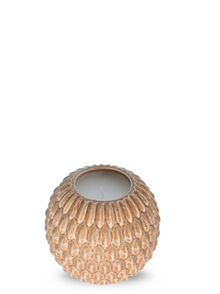 The candle burns evenly, subtly illuminating the texture and producing a gentle, atmospheric glow. Its smaller size makes it ideal for coffee tables, bedside areas, bathroom shelves or as part of a larger decorative arrangement.