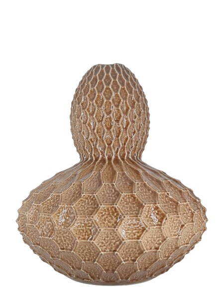 The Living Cappuccino L is the largest piece in the series, defined by its bold double-bulb silhouette and refined honeycomb texture. The warm cappuccino tone adds depth and softness, while the generous size gives the vase a strong, sculptural presence without feeling overwhelming.
