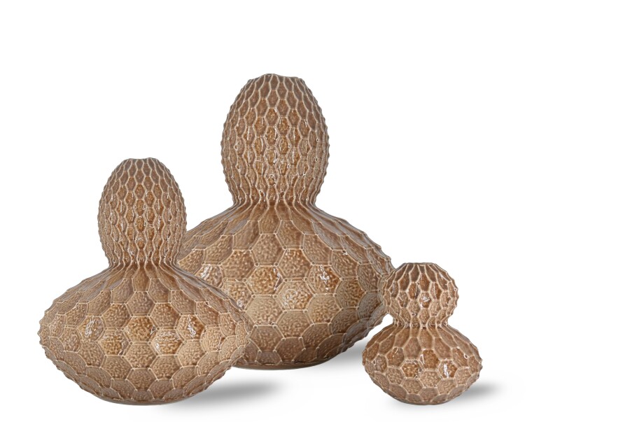Its smaller size makes it ideal for subtle styling, whether with a single branch, dried flowers or simply as a standalone decorative piece. Combine the S with the M or L sizes for a layered display, or let it shine on its own.