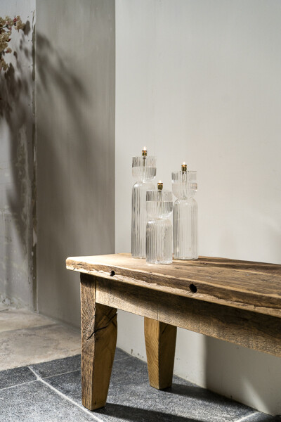 With its compact size of Ø8 x 24 cm this oil lamp is perfect for creating atmosphere during Christmas dinners, winter gatherings or festive occasions. The ribbed glass beautifully reflects the warm glow of the flame, adding an inviting ambience that works in both modern and classic interiors.