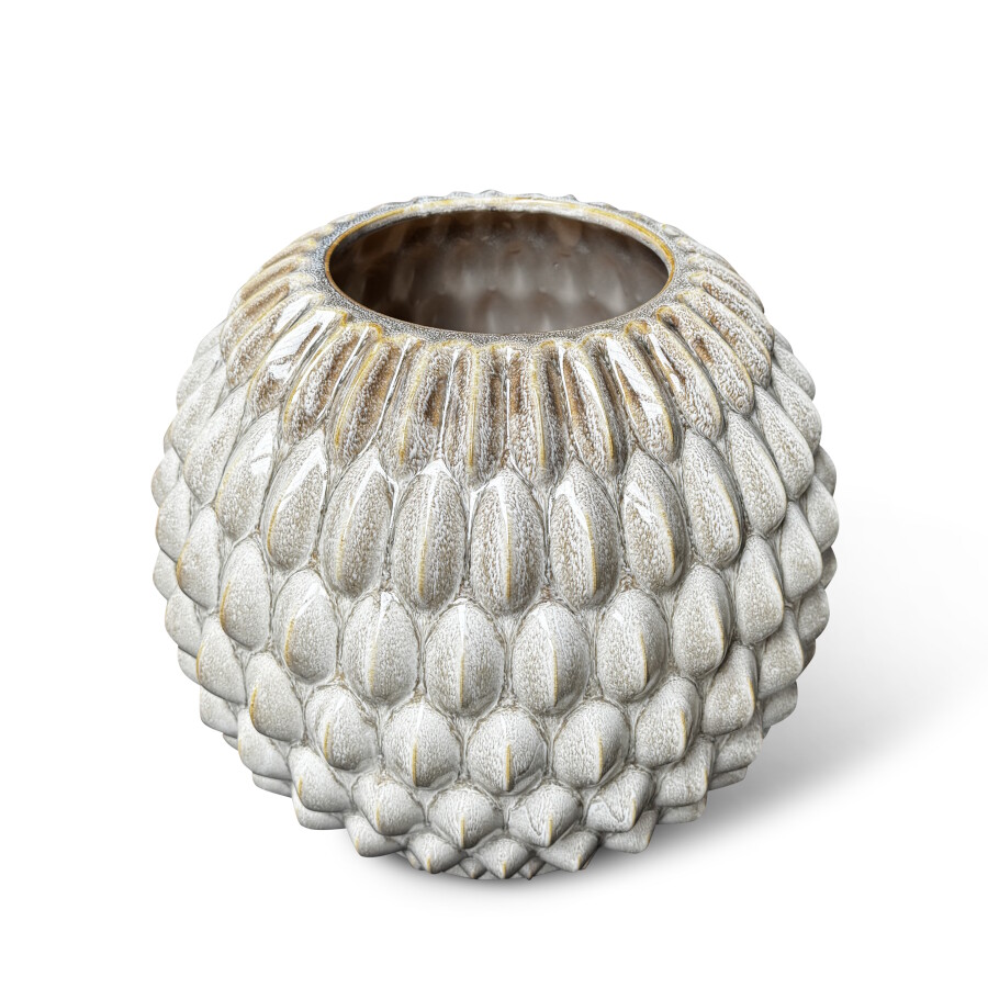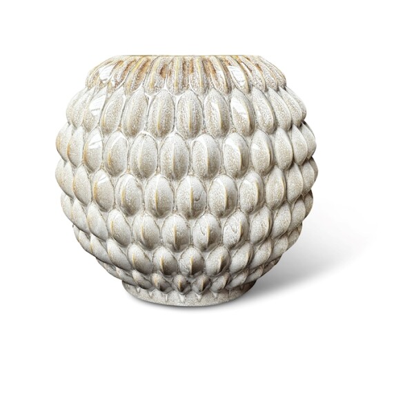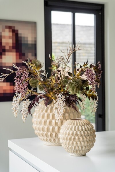 Le vase Bubble L est un vase en céramique fait main depuis les Pays-Bas, de création propre, à la texture de bulles en relief affirmée. Le grand format et la texture singulière en font un attrait visuel direct en vitrine nécessitant force sculpturale. Convient aux grandes compositions florales et aux branches. À combiner avec le format M.