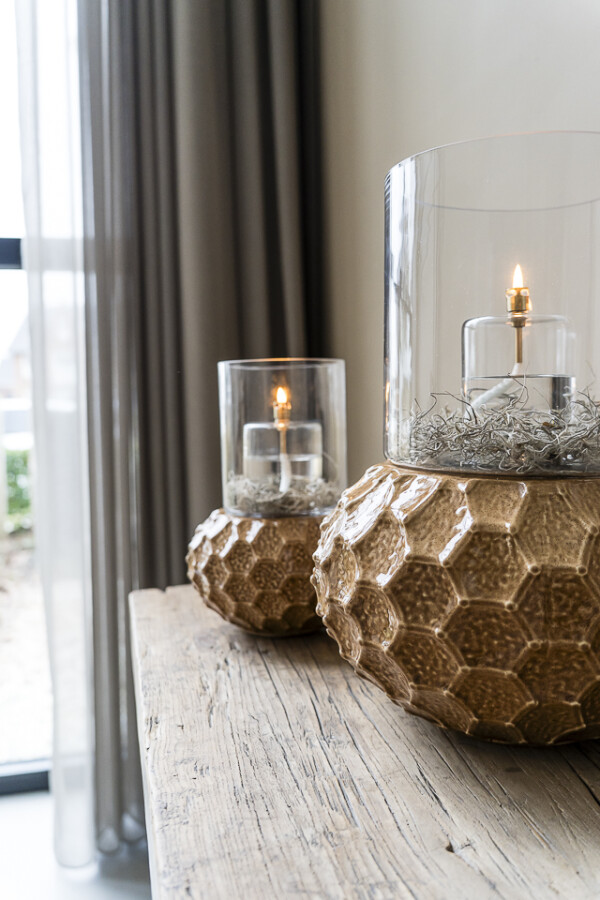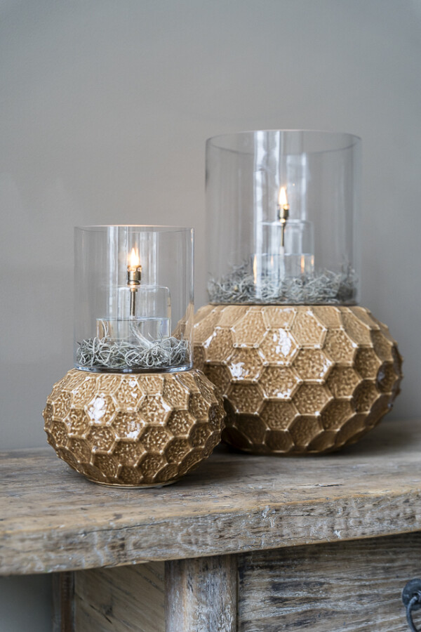 Le Cappuccino Glow M est un photophore en céramique fait main depuis les Pays-Bas, de création propre, dans une teinte cappuccino chaude et à la partie supérieure en verre. Le format compact et la lumière douce en font un point d'ambiance chaleureux en vitrine ou sur une table d'hôtel. Convient comme support pour les lampes à huile Peri, pour les petits bouquets ou comme élément décoratif. À combiner avec le format L.