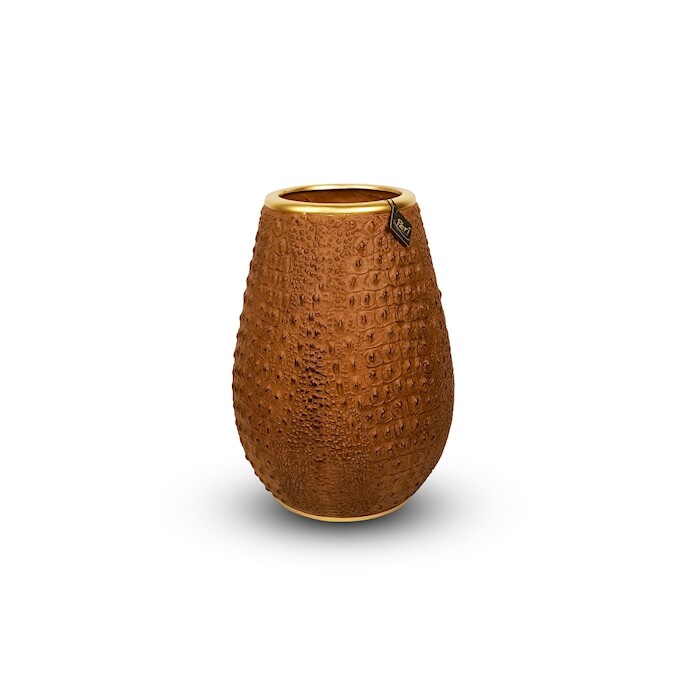 Le vase Crocodile Brown L est un vase en céramique fait main depuis les Pays-Bas, de création propre, de 30 x 30 x 40 cm à la texture en relief rappelant le cuir de crocodile dans une teinte brune chaude. Le grand format et la texture affirmée en font un objet de design qui attire directement l'attention dans un magasin d'intérieur haut de gamme ou un concept store. Convient aux branches et décorations sèches. À combiner avec les variantes Crocodile Green.
