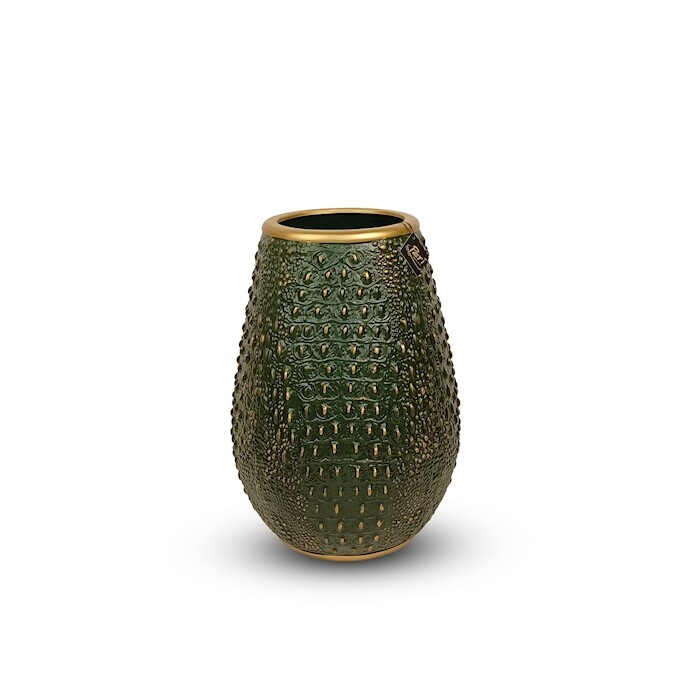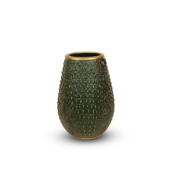 Le vase Crocodile Green L est un vase en céramique fait main depuis les Pays-Bas, de création propre, à la texture en relief de crocodile dans une teinte verte fraîche. Le grand format et la texture crocodile affirmée en font un statement qui suscite immédiatement des questions dans un concept store haut de gamme ou un magasin d'intérieur. Convient aux branches et décorations sèches. À combiner avec le format Green S et le Crocodile Brown L.