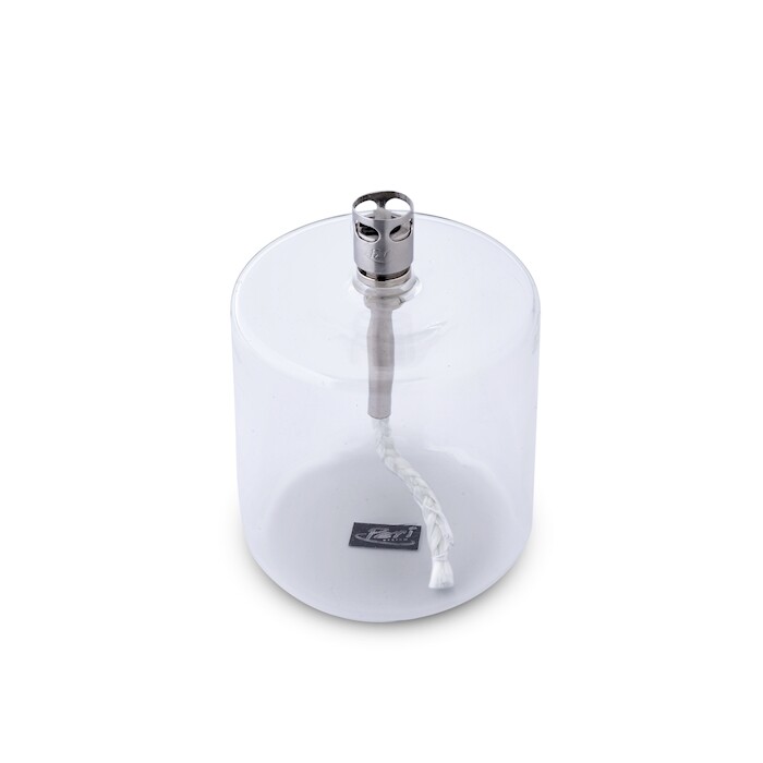 La Cylinder Clear Chrome M est une lampe à huile en verre soufflé à la main depuis les Pays-Bas, à la forme cylindrique élancée en verre transparent et au brûleur chrome. La ligne élancée et le chrome frais conviennent à une terrasse moderne ou à un concept store choisissant délibérément des lignes épurées sans tons dorés. Brûle sans fumée ni odeur avec l'huile de paraffine Peri Living, avec une mèche en fibre de verre. À combiner avec les formats S et L.