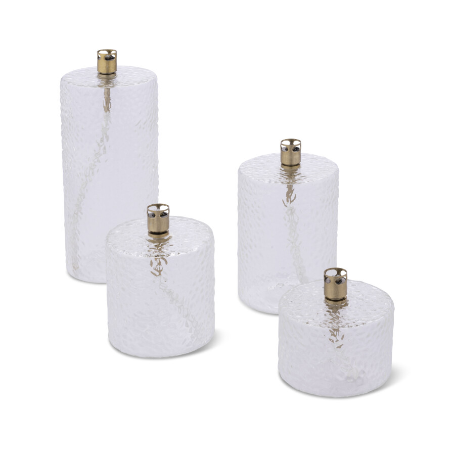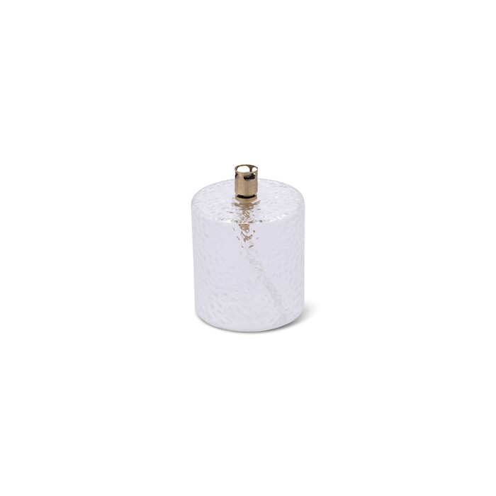 La Cylinder Hammered Brass M est une lampe à huile en verre soufflé à la main depuis les Pays-Bas, à la forme cylindrique en verre martelé et aux détails en laiton. La surface martelée capte la lumière comme seul le travail artisanal sait le faire. S'intègre naturellement dans un Windshelter pour l'extérieur. Brûle sans fumée ni odeur avec l'huile de paraffine Peri Living, avec une mèche en fibre de verre. À combiner avec les formats S, L et XL.