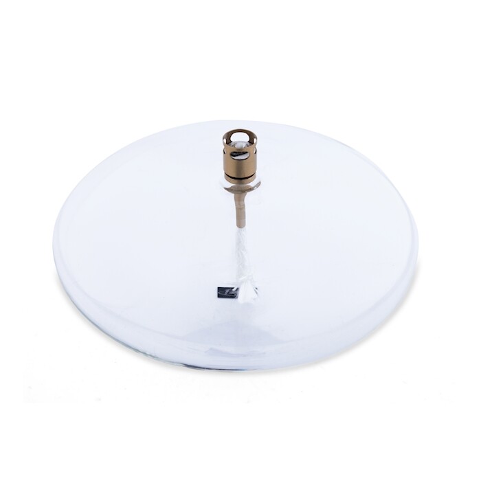 La Disc Clear Brass L est la lampe à huile Peri Living originale depuis 1994, en verre soufflé à la main depuis les Pays-Bas, au design disque plat en verre transparent et aux détails en laiton. Le grand format exprime au mieux cette lampe iconique : centre d'une longue table de jardin, statement en vitrine estivale ou ancre d'une présentation mariage. Brûle sans fumée ni odeur avec l'huile de paraffine Peri Living, avec une mèche en fibre de verre. À combiner avec les formats S et M.