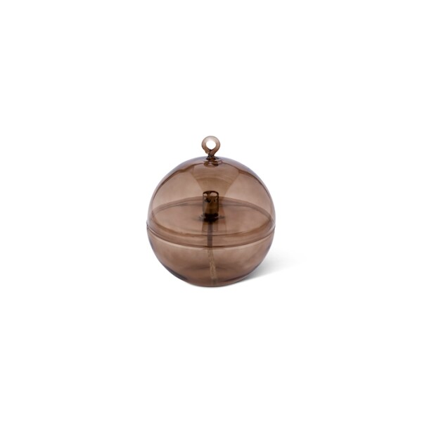 La Round Cover Champagne Brass L est une lampe à huile en verre soufflé à la main depuis les Pays-Bas, à la forme ronde en verre champagne avec couvercle et aux détails en laiton. Le grand format et la teinte champagne chaude s'imposent directement en extérieur, comme pièce centrale sur une grande terrasse ou statement lors d'un dîner de jardin estival. Brûle sans fumée ni odeur avec l'huile de paraffine Peri Living, avec une mèche en fibre de verre.