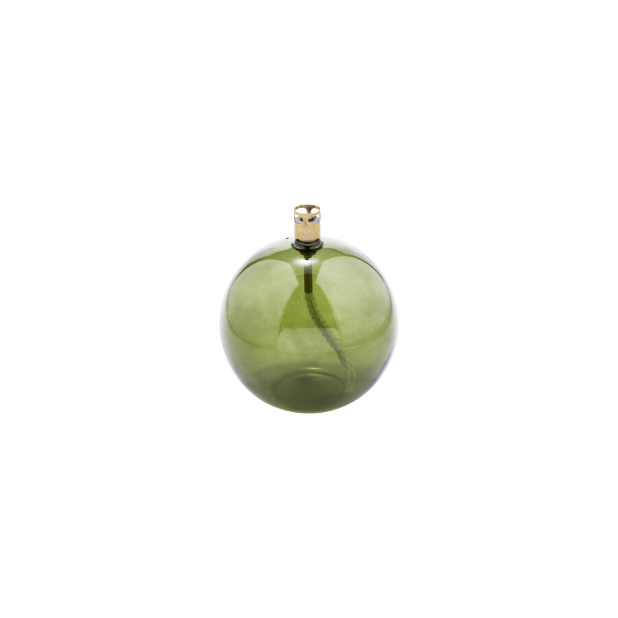 La Round Green Brass M est une lampe à huile en verre soufflé à la main depuis les Pays-Bas, à la forme ronde en verre vert et aux détails en laiton. Le format intermédiaire est le cœur de la série verte, assez grand pour attirer l'attention parmi fleurs et plantes, polyvalent pour un dîner de jardin ou une vitrine estivale millennial green. Brûle sans fumée ni odeur avec l'huile de paraffine Peri Living, avec une mèche en fibre de verre. À combiner avec les formats S et L.