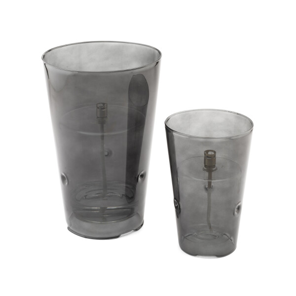 La Windshelter Conical Smoked Brass M est une lampe à huile en verre soufflé à la main depuis les Pays-Bas, à la construction conique coupe-vent en verre smoked et aux détails en laiton. La teinte smoked feutrée et la construction coupe-vent donnent à la lampe une apparence riche et chaleureuse qui ressort encore mieux en extérieur qu'en intérieur. Brûle sans fumée ni odeur avec l'huile de paraffine Peri Living, avec une mèche en fibre de verre. À combiner avec le format L.