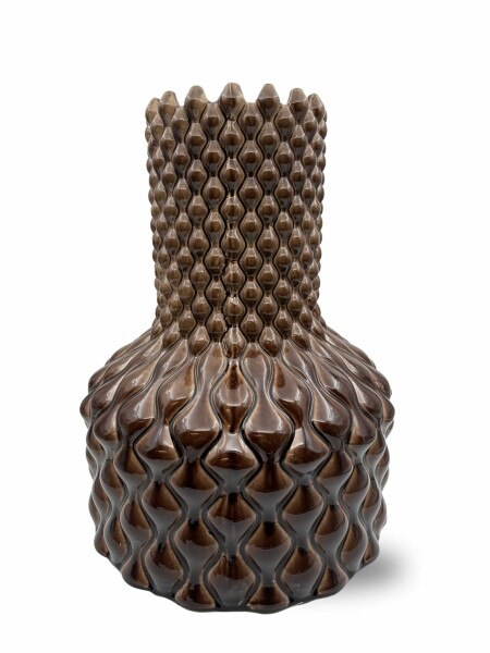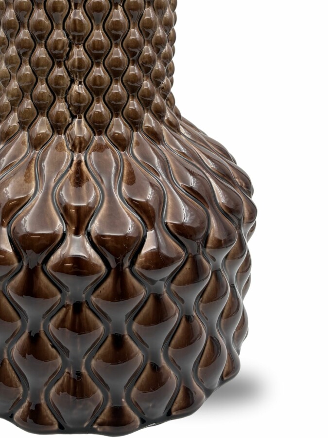 Living Diamond Marron L van Peri Living is een royale keramieken vaas met een diepe marron kleur en glanzende messinggloed. Het opvallende diamantreliëf geeft de vaas een unieke uitstraling die meteen in het oog springt. Deze vaas staat prachtig met zijdebloemen of droogbloemen, maar is ook zonder inhoud al een blikvanger.